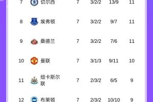 7球:埃弗顿、维拉